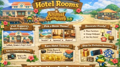 Animal Crossing New Horizons4 Min Read ACNH UpdateonJanuary 17, 2026 The Ultimate Guide to Designing Hotel Rooms in Animal Crossing: New Horizons (Version 3.0) With the Version 3.0 update, Animal Crossing: New Horizons received one of its most creative and long-term gameplay additions: the Resort…