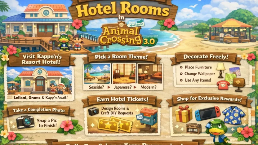 With the Version 3.0 update, Animal Crossing: New Horizons received one of its most creative and long-term gameplay additions: the Resort Hotel.
