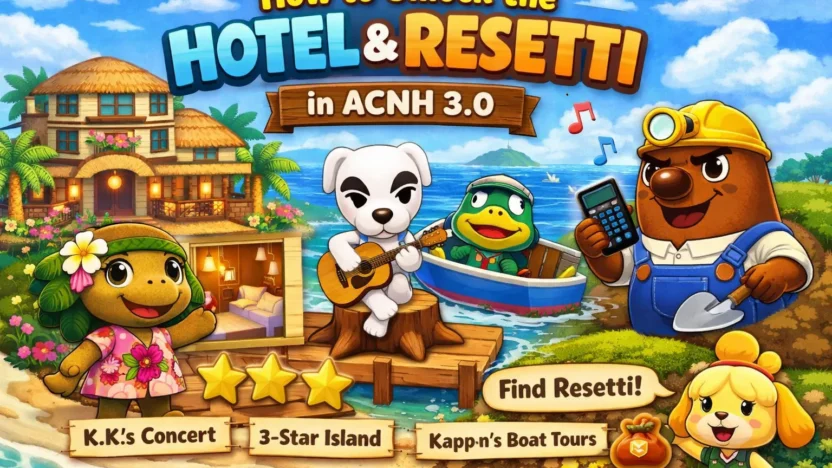 The 3.0 update for Animal Crossing: New Horizons is one of the largest free updates the game has ever received. It introduced entirely new systems that give long-time players fresh goals to work toward. Two features quickly became fan favorites: the Resort Hotel and Resetti’s Cleanup Service.
